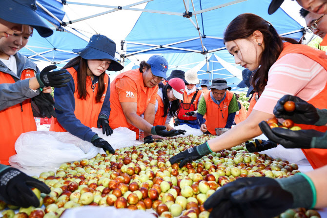 [이데일리 스타in 윤기백 기자] 중앙그룹이 지난 16일 농협중앙회와 함께 경기도 파주시 파주읍 백석리에 위치한 사과대추 재배 농가를 찾아 농촌 일손 돕기 봉사활동을 진행했다. 홍