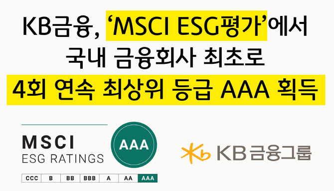 KB금융, MSCI ESG평가서 국내 금융사 최초 4년 연속 최상위 등급