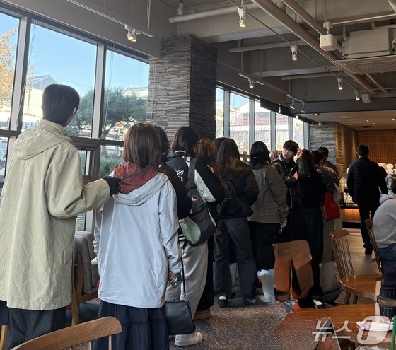 스타벅스가 'Sweet Hour 리유저블 컵' 이벤트를 시작한 19일 오후 경복궁역점 매장 내에 고객들이 기다리고 있다. 뉴스1 News119일 점심…
