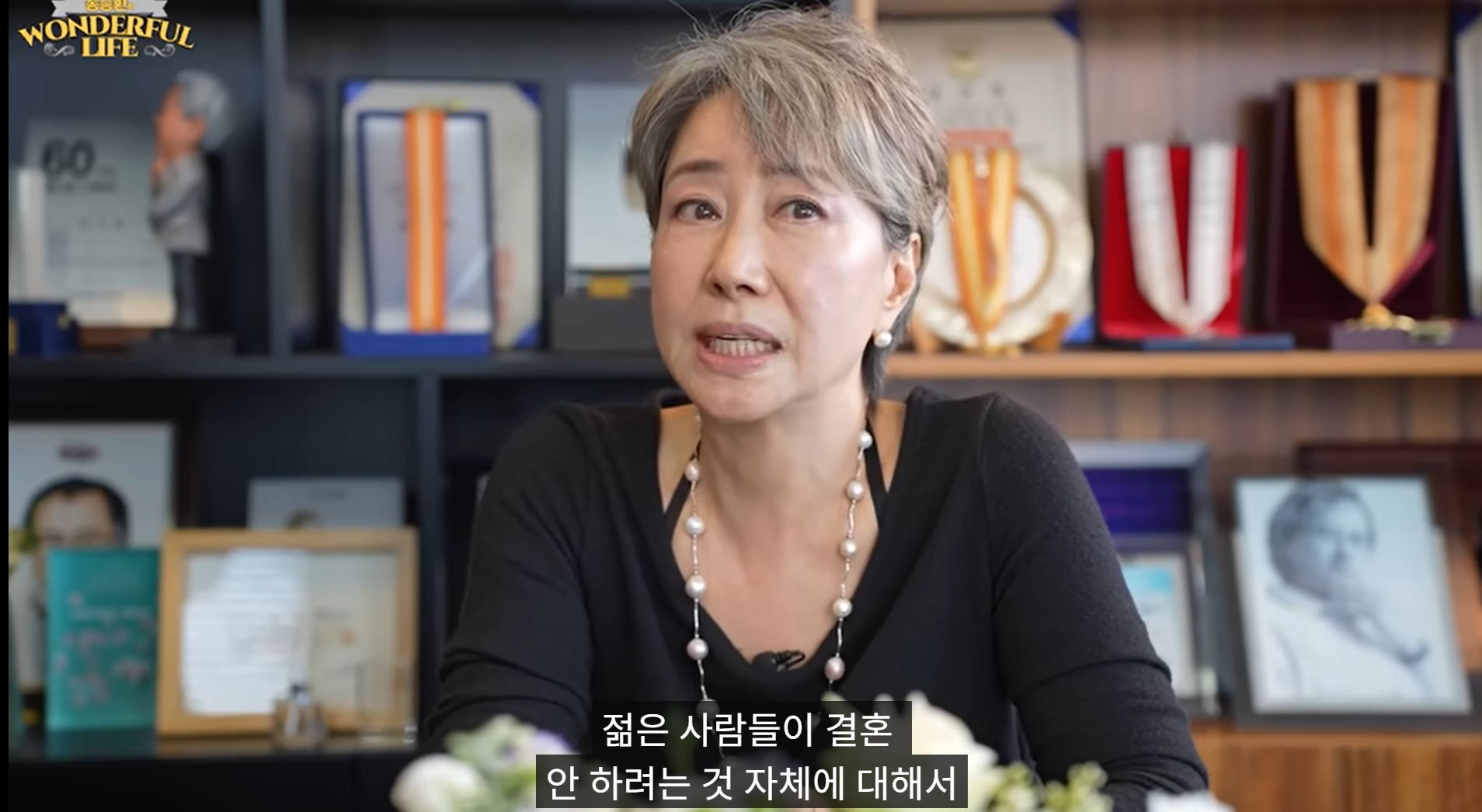 배우 송옥숙이 청년층의 비혼주의 풍조에 쓴소리를 가했다. 최근 송옥숙은 유튜브 채널 '송승환의 원더풀 라이프'에 게스트로 출연해 "요즘 젊은 사람들이 결혼을 하지 않으려는 게 굉장