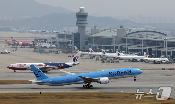 중동 사태로 국제유가와 환율이 오르면서 비용 부담이 커진 항공사들이 운항편을 줄이고 요금을 인상하는 등의 대책이 나오고 있는 가운데 30일 인천국제공항 계류장에서 대한항…