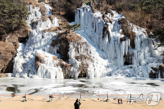 강추위가 이어지고 있는 29일 오후 서울 서대문구 홍제천 인공폭포가 얼어붙어 있다. 2026.1.29/뉴스1 News1 황기선 기자절기상 봄의 시작을…