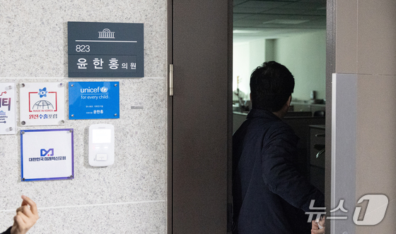 2차 종합특검팀특별검사 권창영이 '대통령 관저 이전' 의혹에 연루된 윤한홍 국민의힘 의원에 대한 강제수사에 착수한 16일 서울 여의도 국회 윤한홍 국민…