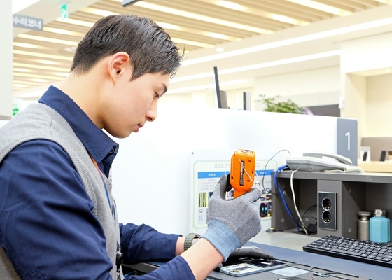 삼성전자서비스 엔지니어가 스마트폰 디스플레이 단품 수리를 진행하는 모습삼성전자서비스 제공. 뉴스1삼성전자 제품의 수리와 사후 서비스…