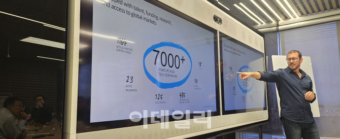텔아비브 비영리 기관 스타트업 네이션 센트럴의 알론 투르카스파 이사가 이스라엘 스타트업에 대해 설명하고 있다. [이데일리 정수영 기자] “혁신, 혁신, 혁신.” 가자 평화협정 체결