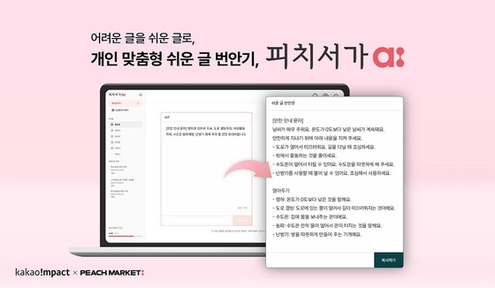 사진=피치마켓 제공사회적기업 피치마켓이 B-Peach Lab비피치랩과 함께 AI 쉬운글 번안 서비스 '피치서가ai'를 개발해 2026년 1월 베…