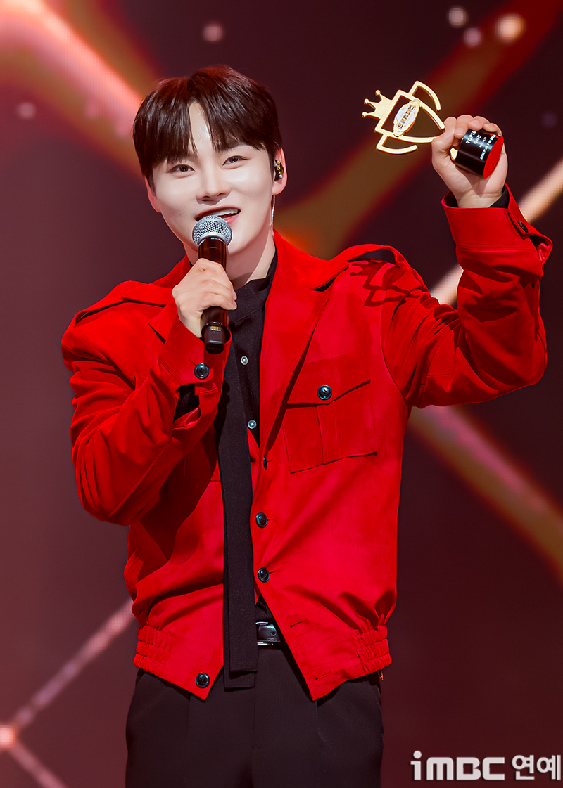 가수 장민호가 최근 경기도 일산 MBC드림센터에서 진행된 MBC ON ‘트롯챔피언’ 방송 촬영 현장에 참석해 멋진 무대 및 '트롯챔피언 어워즈' TOP10 트로피를 들고 수상 소감