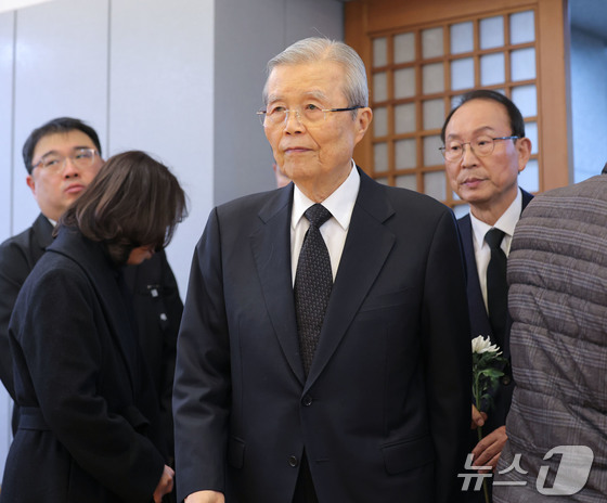 김종인 전 국민의힘 비상대책위원장이 28일 서울 종로구 서울대학교병원 장례식장에 마련된 고 이해찬 전 국무총리의 빈소를 찾아 조문하고 있다. 2026.1.28 ©…