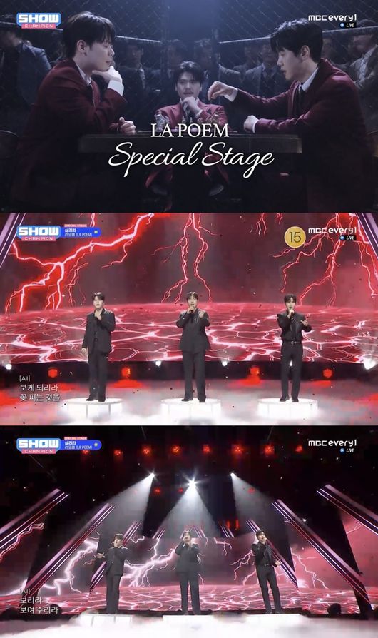 [OSEN=지민경 기자] 크로스오버 그룹 라포엠(LA POEM)이 국보급 하모니를 자랑했다. 라포엠은 지난 8일 오후 5시 방송된 MBC M, MBC에브리원 '쇼! 챔피언'에 출연