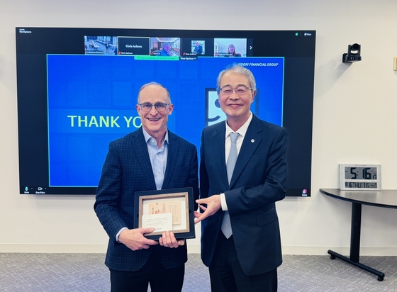 왼쪽부터 GII 스티븐 프레스턴 대표이사와 우리금융그룹 임종룡 회장이 지난 일 미국 메릴랜드주 록빌에 위치한 굿윌스토어 본사에서 기념사진을 촬영했다…