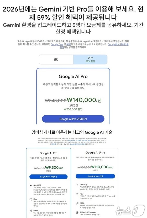 구글 원 공식홈페이지 갈무리구글이 '제미나이3' 시리즈의 기대 이상의 성능을 기반으로 구독 멤버십 파격 할인 및번들링묶음판매 전략으로오픈AI를 …