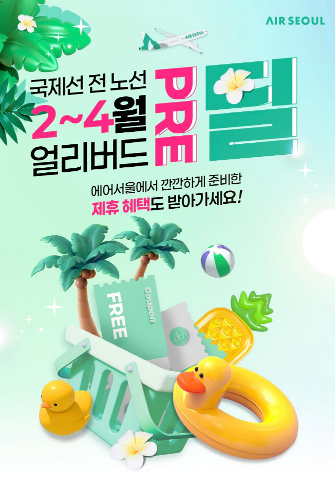[이데일리 이윤화 기자] 에어서울이 오는 2월 4일까지 국제선 전 노선을 대상으로 얼리버드 프로모션을 진행한다고 28일 밝혔다. 탑승 기간이 2월 1일부터 4월 30일까지인 항공권