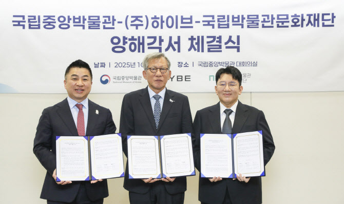 [이데일리 김윤지 기자] 국립중앙박물관이 방시혁 하이브(352820) 이사회 의장과의 업무협약(MOU) 체결 사진을 공식 소셜미디어(SNS) 계정에 게시했다가 삭제한 것으로 4일