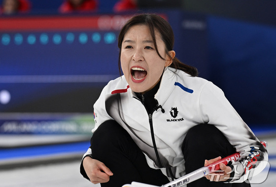 컬링 김은지가 18일현지시간 이탈리아 코르티나담페초 컬링 올림픽 스타디움에서 열린 2026 밀라노ㆍ코르티나담페초 동계올림픽 컬링 여자 라운드로빈 한국과…