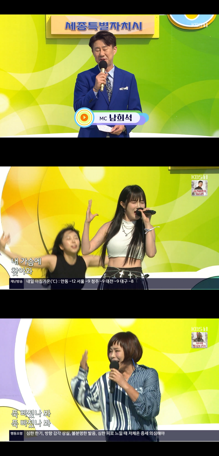 (MHN 김설 기자) KBS 1TV ‘전국노래자랑’이 세종특별자치시의 열기로 일요일 낮을 뜨겁게 달궜다. 11일 방송된 ‘전국노래자랑’ 2148회는 세종중앙공원 도시축제마당 특설무