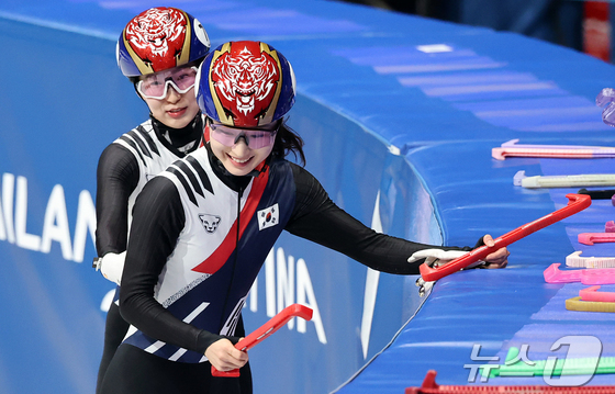 쇼트트랙 최민정이 14일현지시간 이탈리아 밀라노 아이스 스케이팅 아레나에서 열린 2026 밀라노·코르티나담페초 동계올림픽 쇼트트랙 여자 3000m 계주…