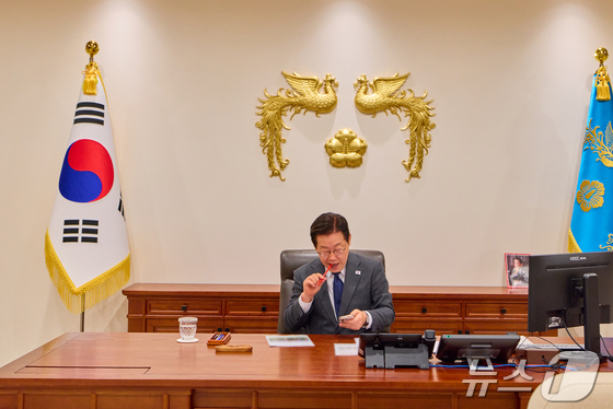 이재명 대통령이 지난 일 서울 용산 대통령실 청사에서 집무 중 스마트폰을 살펴보고 있다. 이재명 대통령 SNS. 재판매 및 DB 금지 .…