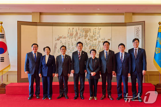 이재명 대통령이 18일 서울 용산 대통령실에서 열린 대전·충남 국회의원 오찬 간담회에서 참석자들과 기념촬영을 하고 있다. 대통령실 제공. 재판매 및 DB 금지&…
