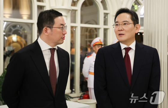 또 럼 베트남 공산당 서기장 부인 응오 프엉 리 여사가 선물한 분홍색 아오자이를 입고 있는 김혜경 여사.이재명 대통령 인스타그램 갈무리 뉴…