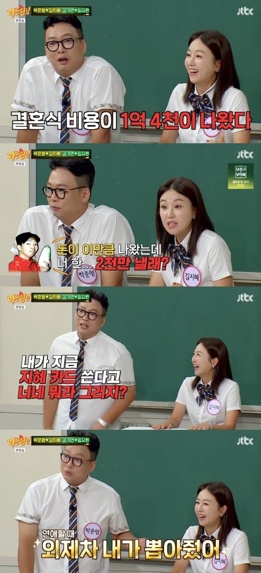 <방송 시청 후 작성된 리뷰 기사입니다.> [OSEN=임혜영 기자] 박준형이 김지혜 돈을 쓰는 것에 대해 억울함을 드러냈다. 4일 방송된 JTBC ‘아는 형님’에는 김가연-임요환,