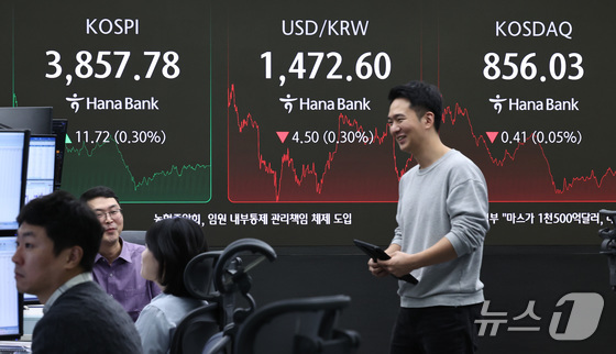 서울 중구 하나은행 딜링룸 전광판. 2025.11.25/뉴스1 News1 구윤성 기자최근 달러·원 환율이 1470원대 후반에서 등락을 반복하면서 국민…