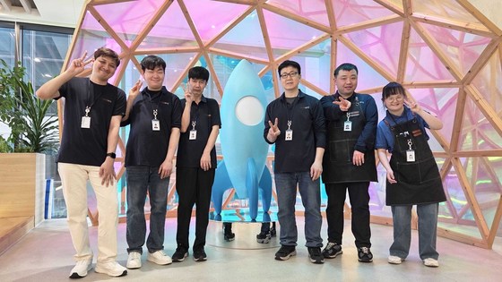 쿠팡 선릉 오피스에서 사내 공용컵 수거 및 세척 직무를 담당하고 있는 장애인 직원들이 기념 촬영을 하고 있다.쿠팡 제공쿠팡이 지난해 10월 창사…