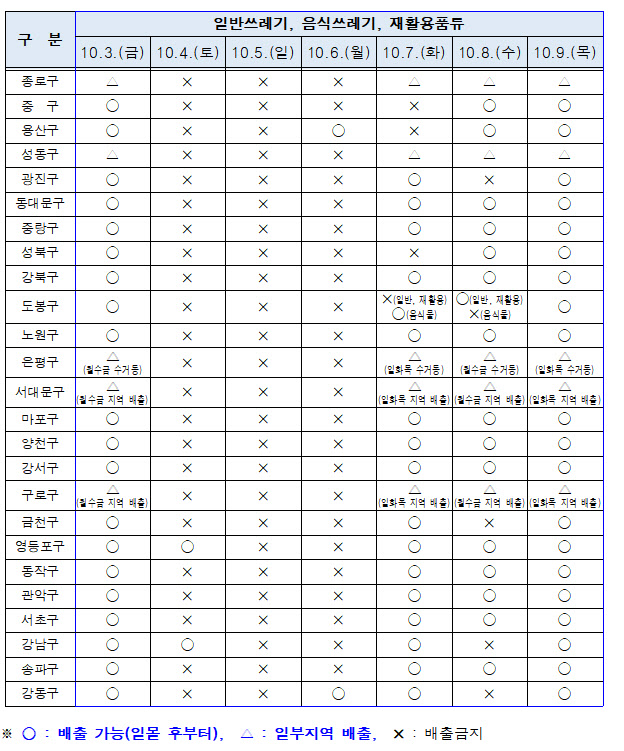 서울시 “추석 연휴 우리동네 쓰레기 배출일 확인하세요”