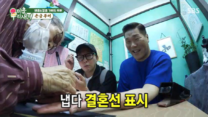 [이데일리 스타in 김가영 기자] ‘미운 우리 새끼’ 서장훈, 탁재훈이 손금을 보면서 결혼운이 두 번이라는 이야기를 들었다. 14일 방송된 SBS ‘미운 우리 새끼’에서는 서장훈,