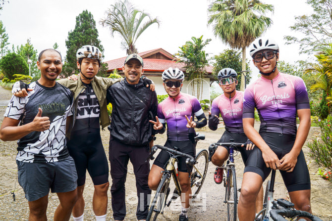 ‘코타키나발루 라이딩 투어’ 현지 라이더들과 동반 라이딩 기념촬영 (사진=모두투어) [이데일리 이민하 기자] 모두투어가 국내 대표 로드사이클 동호회 ROSA Cycling Club