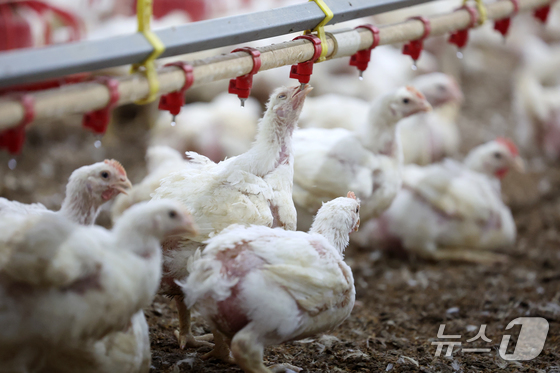 10일 오전 전남 나주시 세지면의 한 양계장에서 더위에 지친 닭이 물을 마시고 있다. 2025.7.10 뉴스1 이승현 기자농촌진흥청은 봄철 환절기에 …