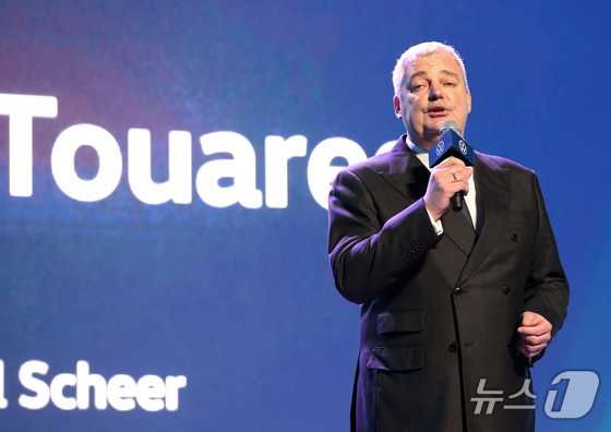 틸 셰어 폭스바겐그룹코리아 대표이사 사장이 지난 월서울 용산구 그랜드하얏트 서을 그랜드볼룸에서 플래그십 스포츠유틸리티차량SUV 신형 투아렉을 소개하는…