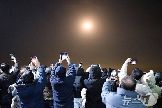 한국형 발사체 누리호KSLV-Ⅱ가 발사된 27일 새벽 고흥우주발사전망대에서 지켜보던 관람객들이 스마트폰으로 이를 촬영하고 있다. 차세대중형위성 3호…
