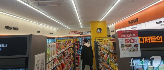 24일 이마트24 강남선릉역점 내부이마트24가 '고객이 자연스럽게 머물 수 있는 공간'의 확대를 내년 전략으로 삼고 확 바뀐 매장을 공개했다. 바뀐 매장을 채울 …