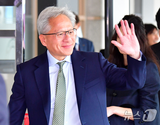 아시아태평양 경제협력체APEC에 참석하기 위해 전용기로 경북 포항경주공항에 도착한 엔비디아 창립자 겸 CEO 젠슨 황이 공항 밖에서 기다리던 시민들에게…