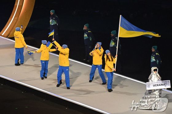 '전쟁 반대' 러시아 여성, 우크라 명판 들고 개막식 입장[올림픽]