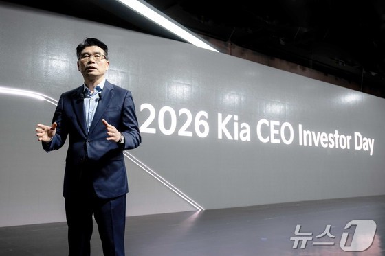 송호성 기아 사장이 9일 서울 중구 신라호텔에서 열린 2026 CEO 인베스터 데이에서 기아의 중장기 사업 전략 등에 대해 설명하고 있다. 현대차·기아 제공. …
