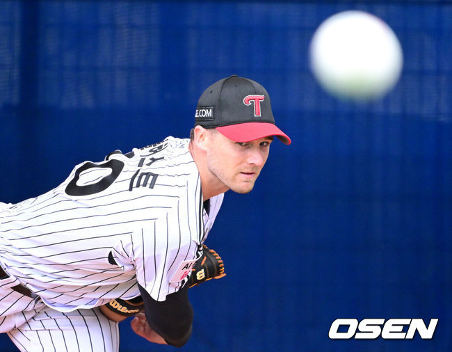 [OSEN=창원, 한용섭 기자] 프로야구 LG 트윈스 외국인 투수 톨허스트가 시범경기 첫 등판에서 깔끔한 투구를 기록했다. 홈런 한 방이 옥에 티였지만. 톨허스트는 13일 창원 마