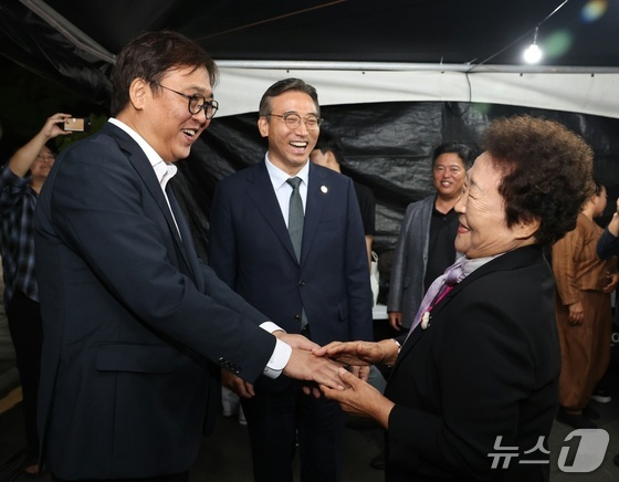 최휘영 문체부 장관과 · 생존자 세 고완순 할머니"· 당시 저는 살이었습니다. 저는 옴팡밧 시쳇더미 숨어서 목숨을 건졌지만 살 동생은 군인의 몽둥이…