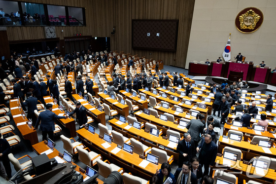 지난해 12월 30일 서울 여의도 국회에서 열린 제430회 국회임시회 제3차 본회의 산회 후 의원들이 본회의장을 나서고 있다. 2025.12.30/뉴스…