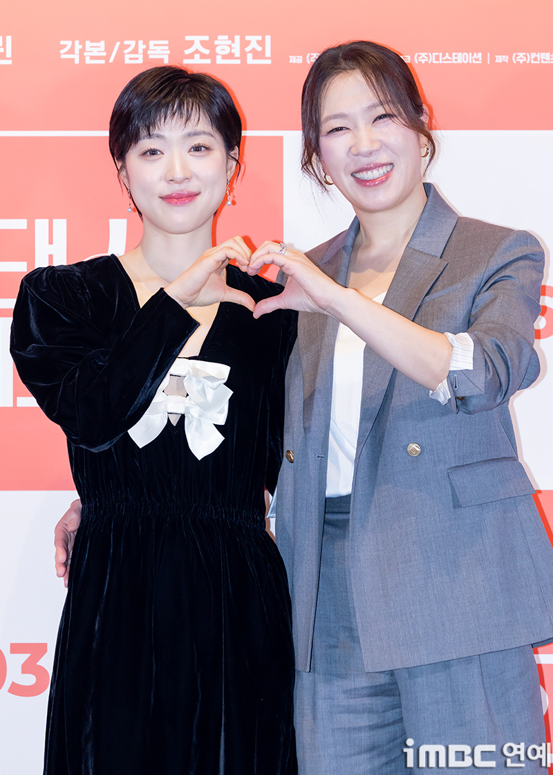 배우 최성은, 염혜란이 24일 오후 서울 용산CGV에서 열린 영화 ‘매드 댄스 오피스’ 언론시사회에 참석해 포즈를 취하고 있다. ‘매드 댄스 오피스’는 24시간 완벽하게 살아오던