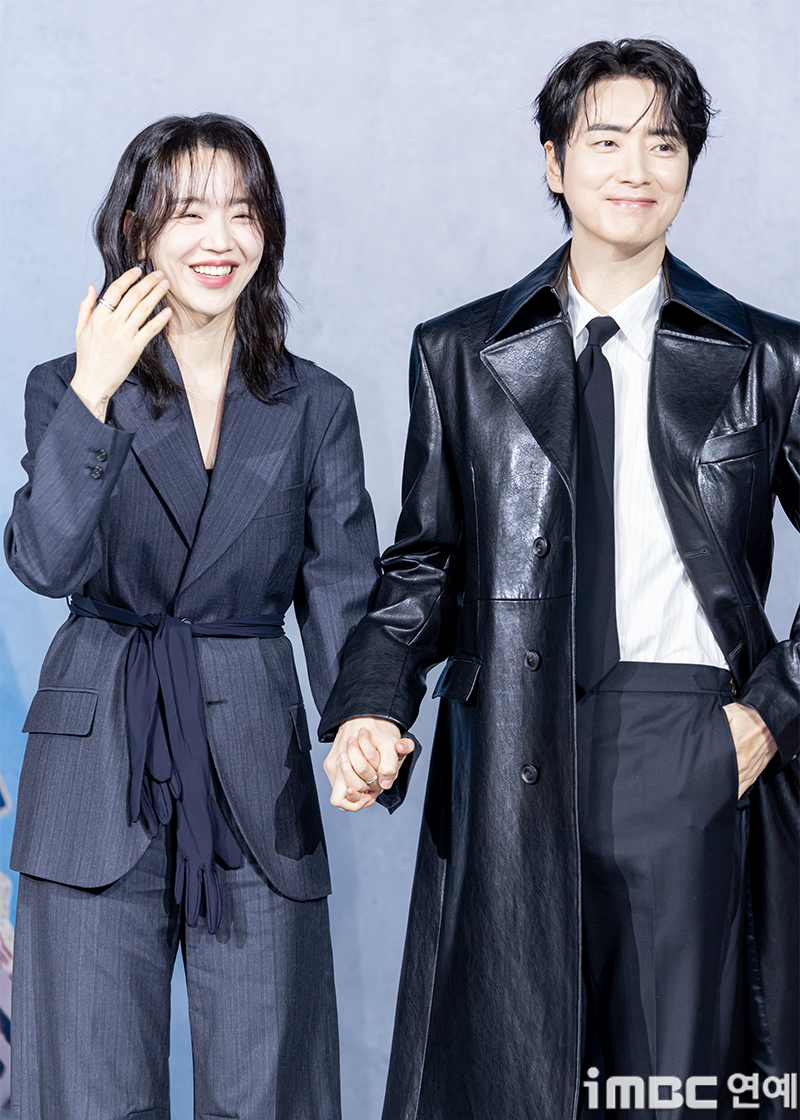 배우 신혜선, 이준혁이 10일 오전 서울 중구 앰배서더 풀만 호텔에서 열린 넷플릭스 ‘레이디 두아’ 제작발표회에 참석해 포즈를 취하고 있다. ‘레이디 두아’는 가짜일지라도 명품이