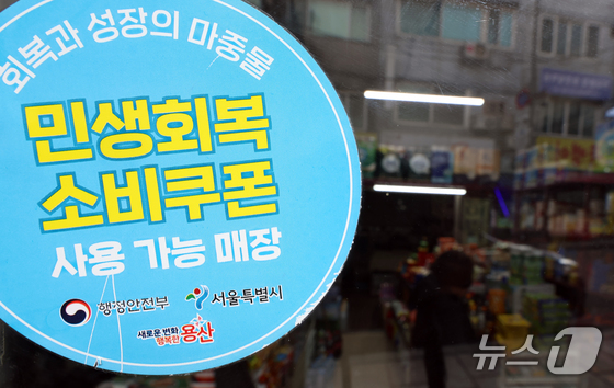 30일 서울 용산구 상점에 민생회복지원금 사용처 안내문이 걸려 있다. 2025.11.30 뉴스1 김명섭 기자민생회복 소비쿠폰 등 경제 상황 극복을 위…