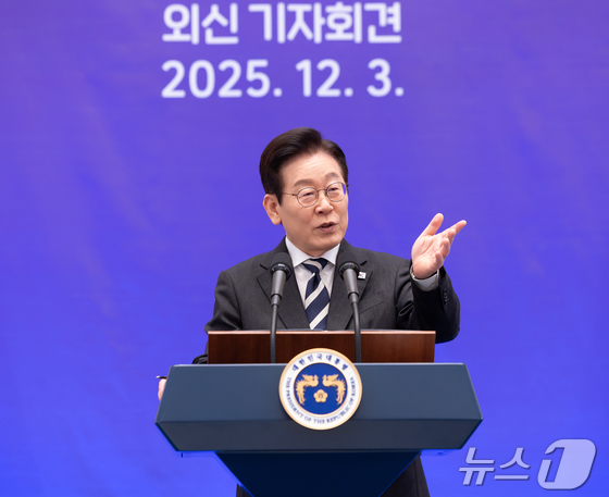이재명 대통령이 3일 청와대 영빈관에서 열린 '새롭게 선 민주주의, 그 1년' 외신 기자회견에서 취재진의 질문을 받고 있다.대통령실 제공. 재판매 및 DB 금지…