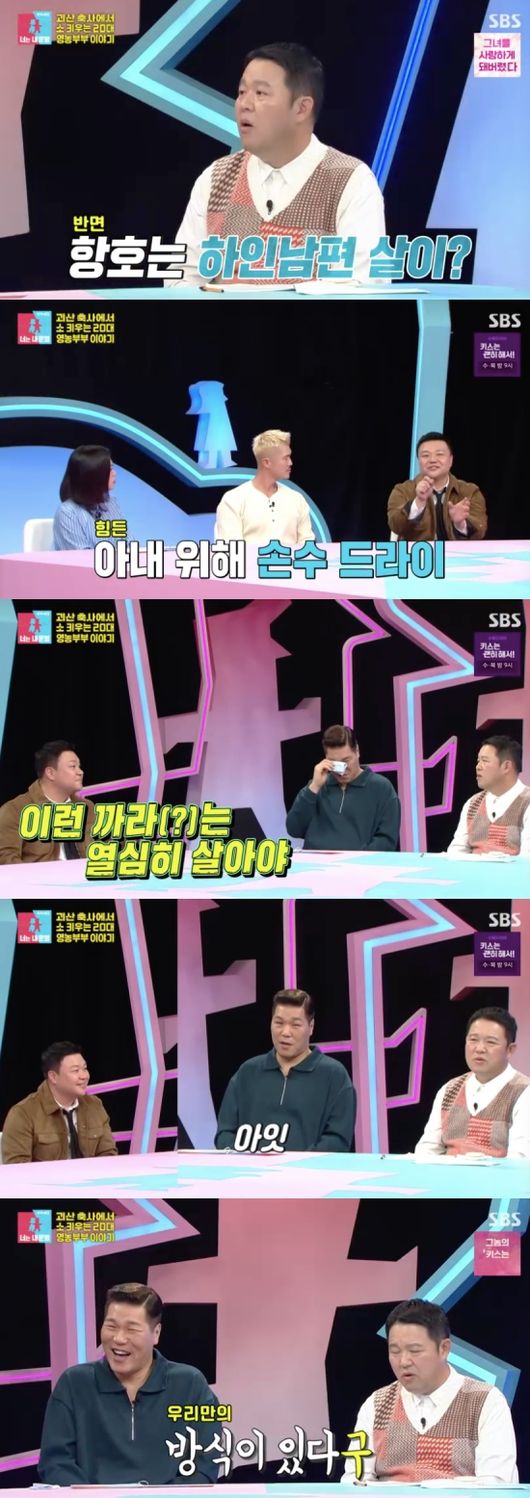 방송 시청 후 작성된 리뷰 기사입니다. [OSEN=임혜영 기자] 배우 태항호가 '김사랑 닮은꼴'로 알려진 아내에게 자발적 하인 노릇을 한다고 밝혔다. 17일 방송된 SBS 예능 '