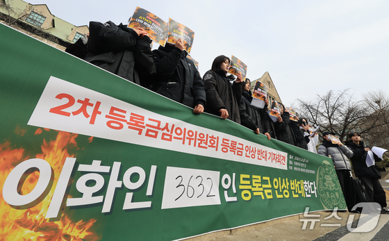 이화여자대학교 제58대 총학생회 학생들이 26일 서울 서대문구 이화여자대학교 본관 앞에서 열린 등록금 인상 반대 기자회견을 갖고 있다. 2026.1.26/뉴스1 &cop…