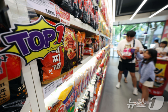 서울 마포구 CU 홍대상상점에 마련된 '라면 라이브러리'에서 시민들이 라면을 고르고 있다. ../뉴스 News 김민지 기자유통업계의 …