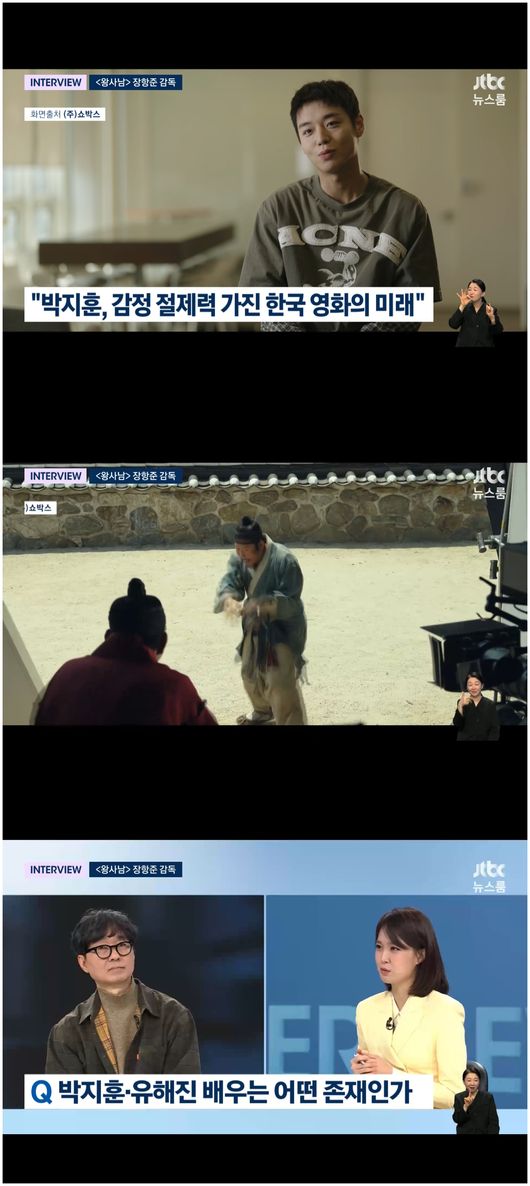 <리뷰 : 방송 시청 후 작성된 리뷰 기사입니다.> [OSEN=오세진 기자] ‘뉴스룸’ 감독 장항준이 천만 관객을 넘긴 '왕과 사는 남자'의 주연 박지훈, 유해진에 대한 칭찬을 아