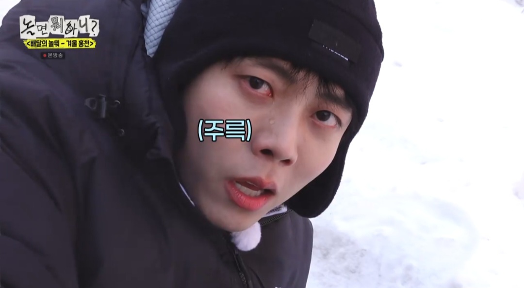 주우재가 힘든 혹한기 촬영에 눈물을 쏙 뺐다. 1월 31일 방송된 MBC 예능 프로그램 ‘놀면 뭐하니?’ 315회에서는 2024년 ‘배달의 놀뭐’로 첫 인연을 맺은 강원도 홍천 산