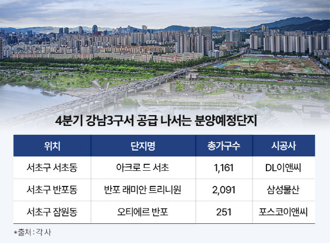 [이데일리 최정희 기자] 올해 4분기(10~12월) 아크로 드 서초 등을 비롯한 강남3구(강남·서초·송파) 중심으로 신규 아파트 분양에 관심이 집중되고 있다. 20일 건설업계에 따