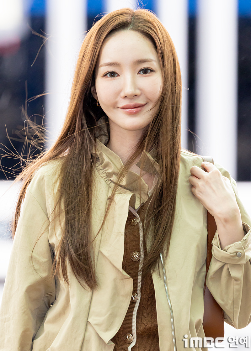 배우 박민영이 2일 오후 화보 촬영 차 인천국제공항 제2여객터미널을 통해 태국 푸켓으로 출국하고 있다. 이날 박민영은 브라운 긴 생머리에 베이지 크롭 자켓, 스웨터 재질의 브라운